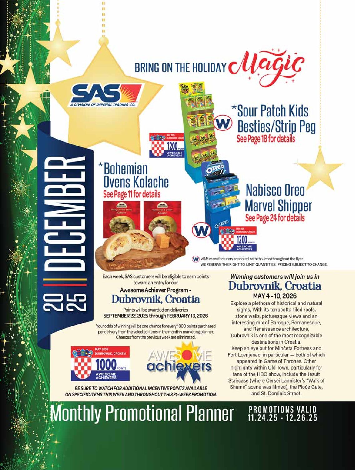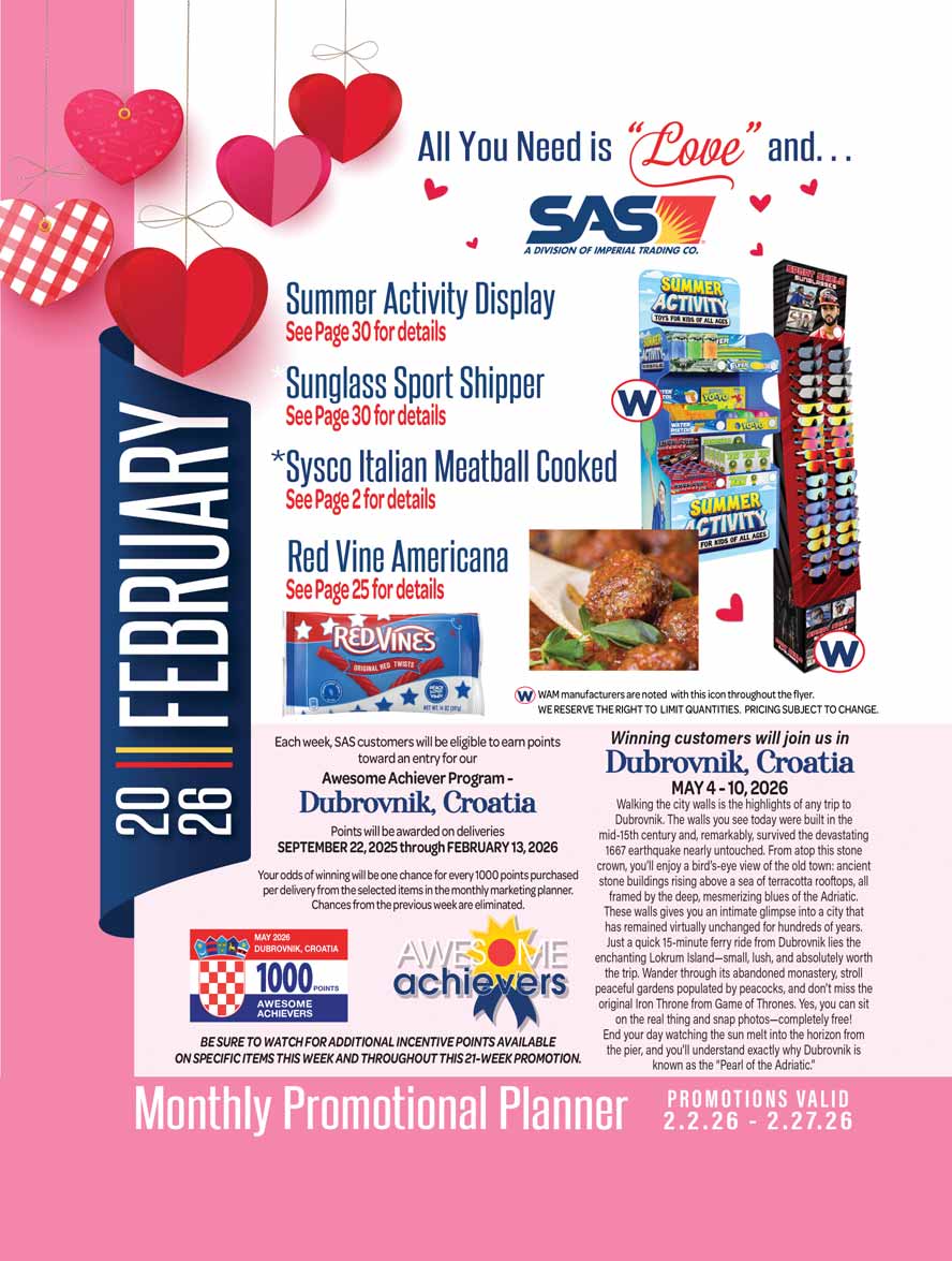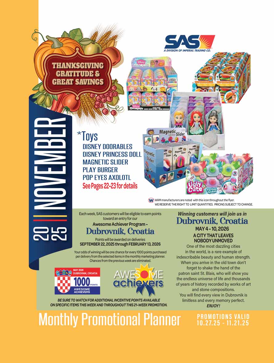 Monthly Promotional Planners are published every four weeks. This publication highlights key items that feature special allowances for retailers for current ships and future prebooks. See your SAS Sales Rep for your copy.