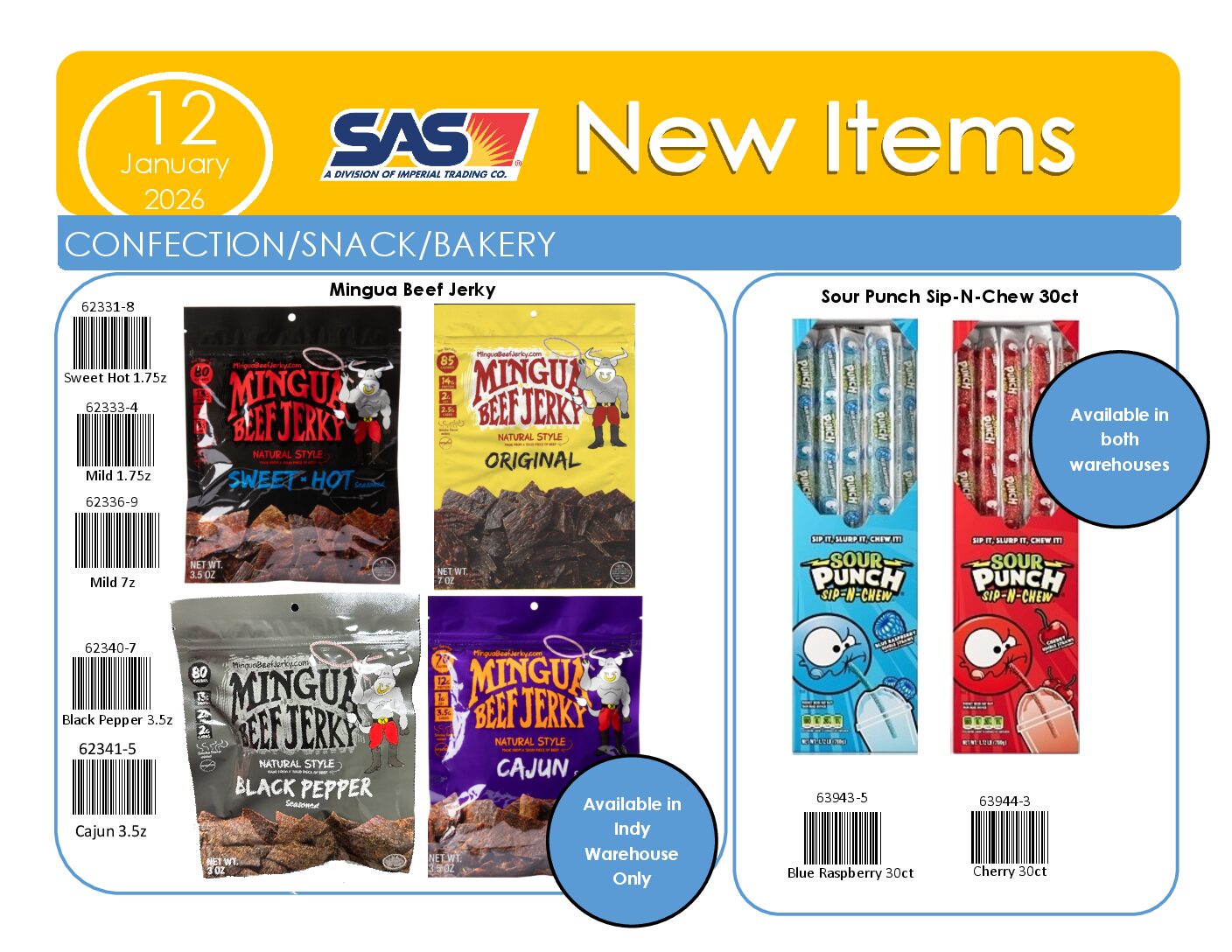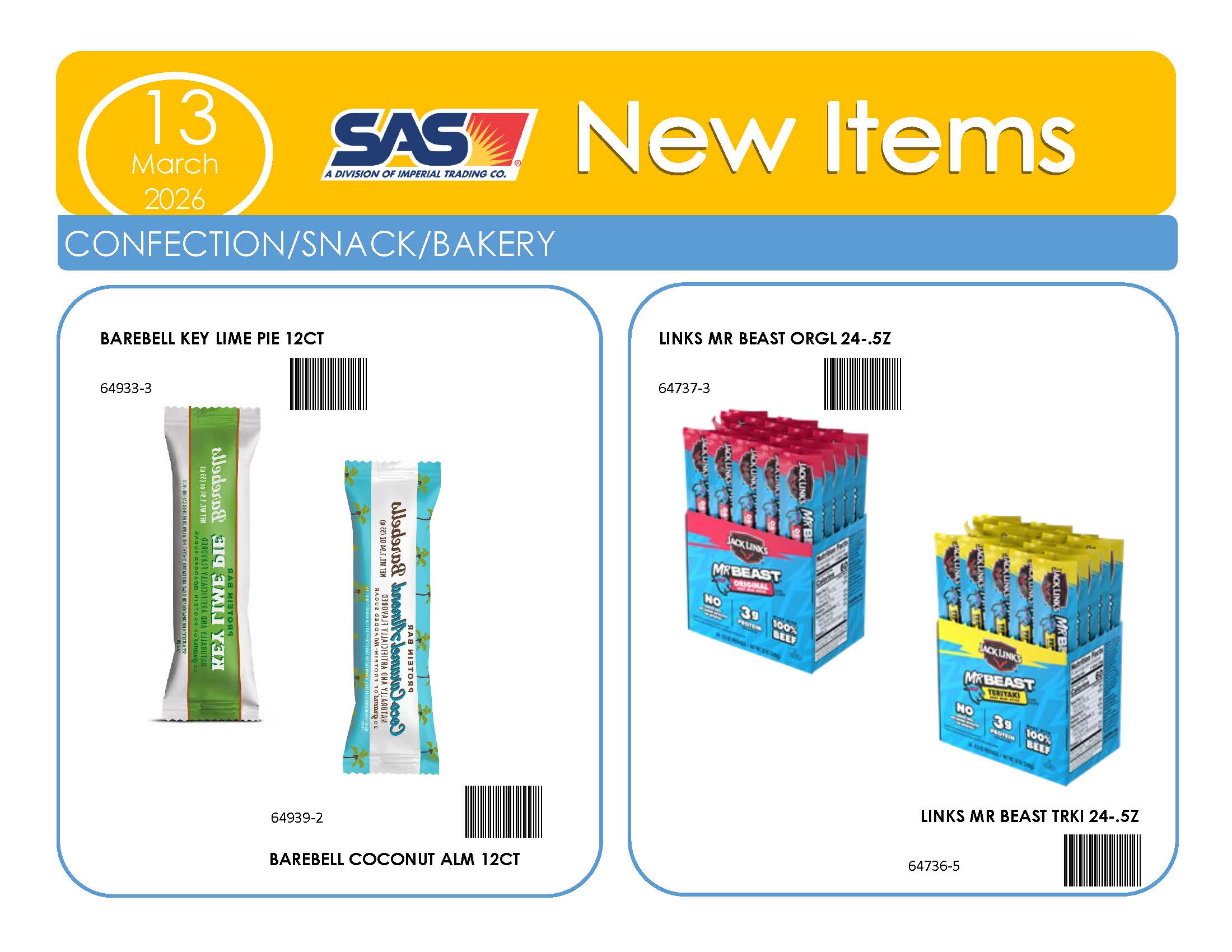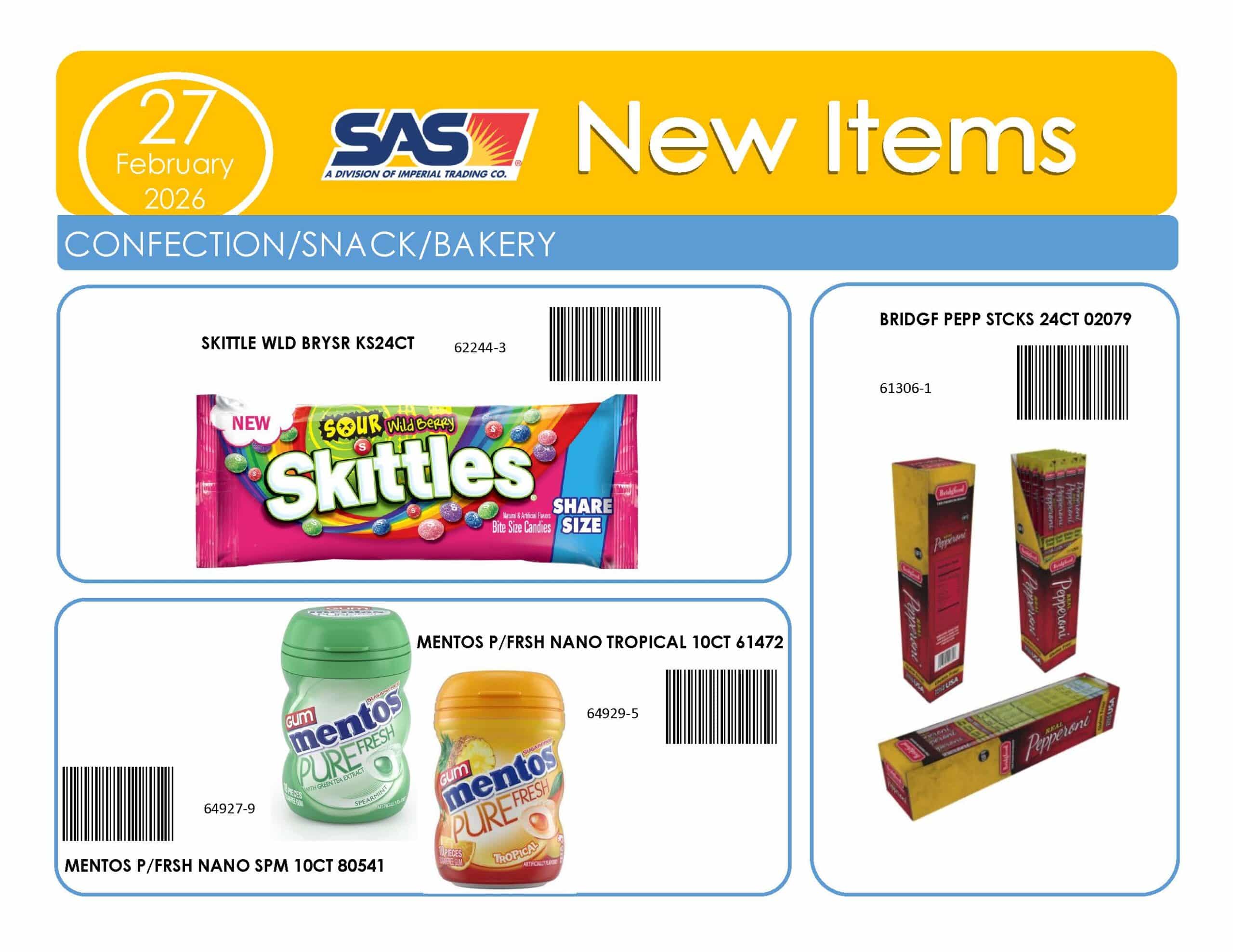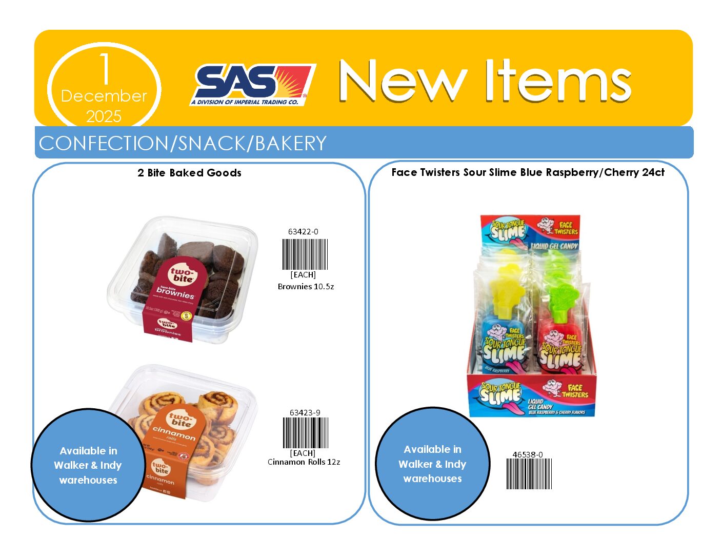 This program puts our customers on the cutting edge for new products in the novelty candy, confection, and snack category. The new items are automatically shipped to help you be the First to the Market to have the product. Download the SAS Pacesetter Contract below, or sign up through your SAS Sales Rep.
